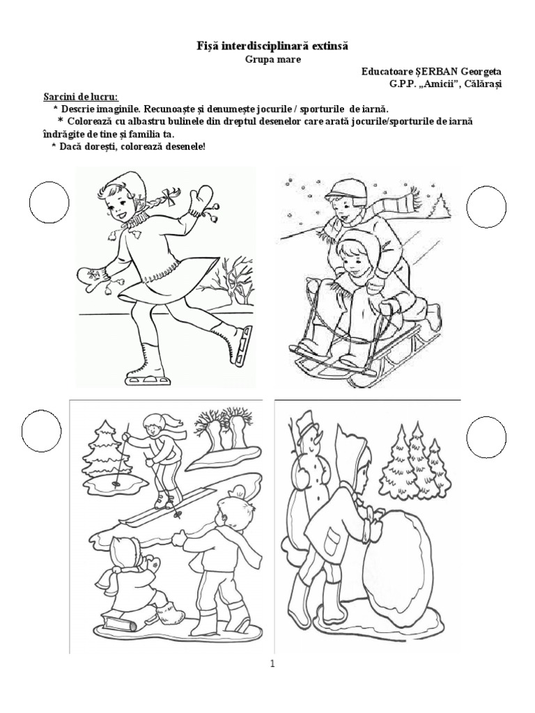 Fise De Lucru Gradinita Fise De Lucru Pentru Saptamana Jocurile Copiilor Iarna