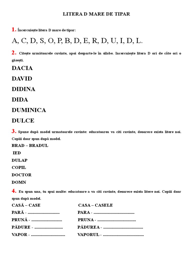 Litera D Fișă De Lucru Metoda Cadranelor Fișe Pentru Exersarea Literelor