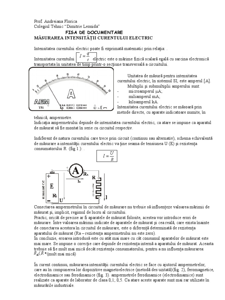 Referat Masurarea Intensitatii Curentului Electric Si A Tensiunii Electrice Automatica 208708