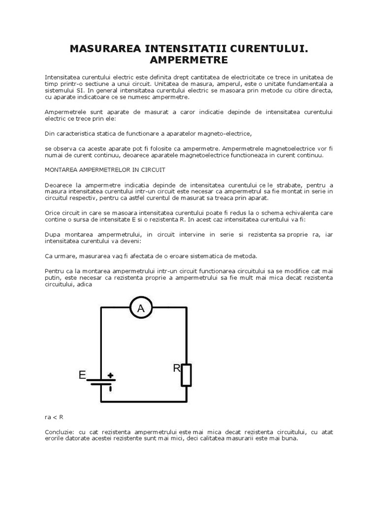 Măsurarea Intensităţii Curentului Ampermetre