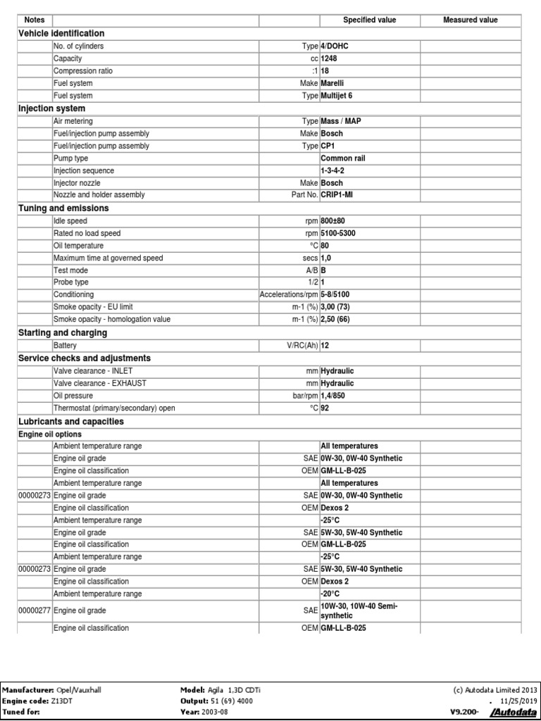 1 3 Cdti Date Tehnice Motor Oil Fuel Injection Free 30 Day Trial Scribd